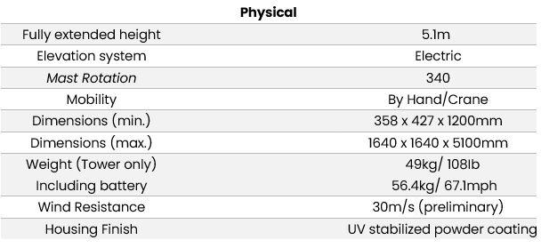 Quick, single-person deployment (<49kg, 1.2m transport height)